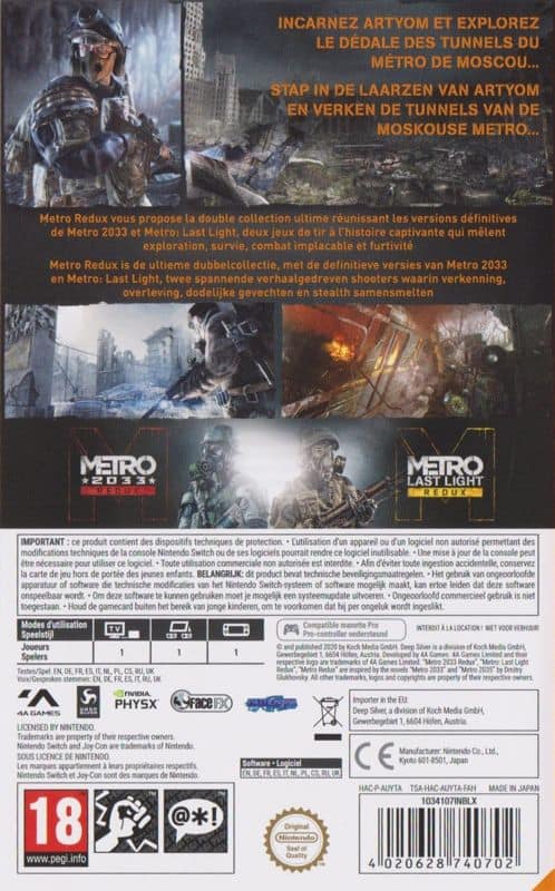 Metro Redux ל-Nintendo Switch הוא אוסף של שני המשחקים בסדרת MetroMetro 2033 ו-Metro: Last Light, המתרחשים בעולם פוסט-אפוקליפטי. המשחקים מציעים חוויית ירי-פעולה בשילוב אלמנטים של הישרדות, עם סיפור מותח בסביבה עוינת ומלאה יצורים מוטנטים. הגרסה ל-Switch כוללת שדרוגים גרפיים, כל ההרחבות שיצאו, ויכולת לשחק גם במצב נייד.